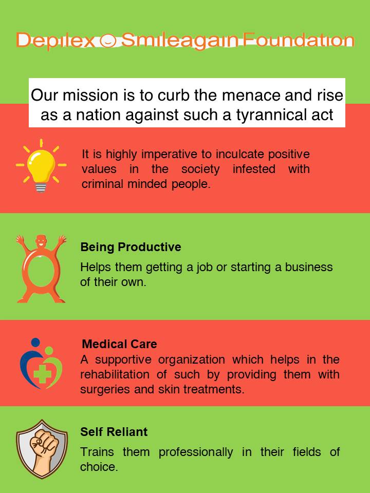 The smile again foundation is a non-government organization that aims to help acid attack victims by providing shelter and jobs to these underprivileged people. It is operated under the supervision of “Masarrat Misbah” who has been helping these women since 2005 to become a normal and functioning citizen of the Pakistani society. The smile again foundation was the first ever NGO of Pakistan that specifically helped acid burn victims. Masarrat Misbah herself is a beautician, who has provided medical aid to these victims and has received the pride of performance award for her contributions in the field of medical treatment.